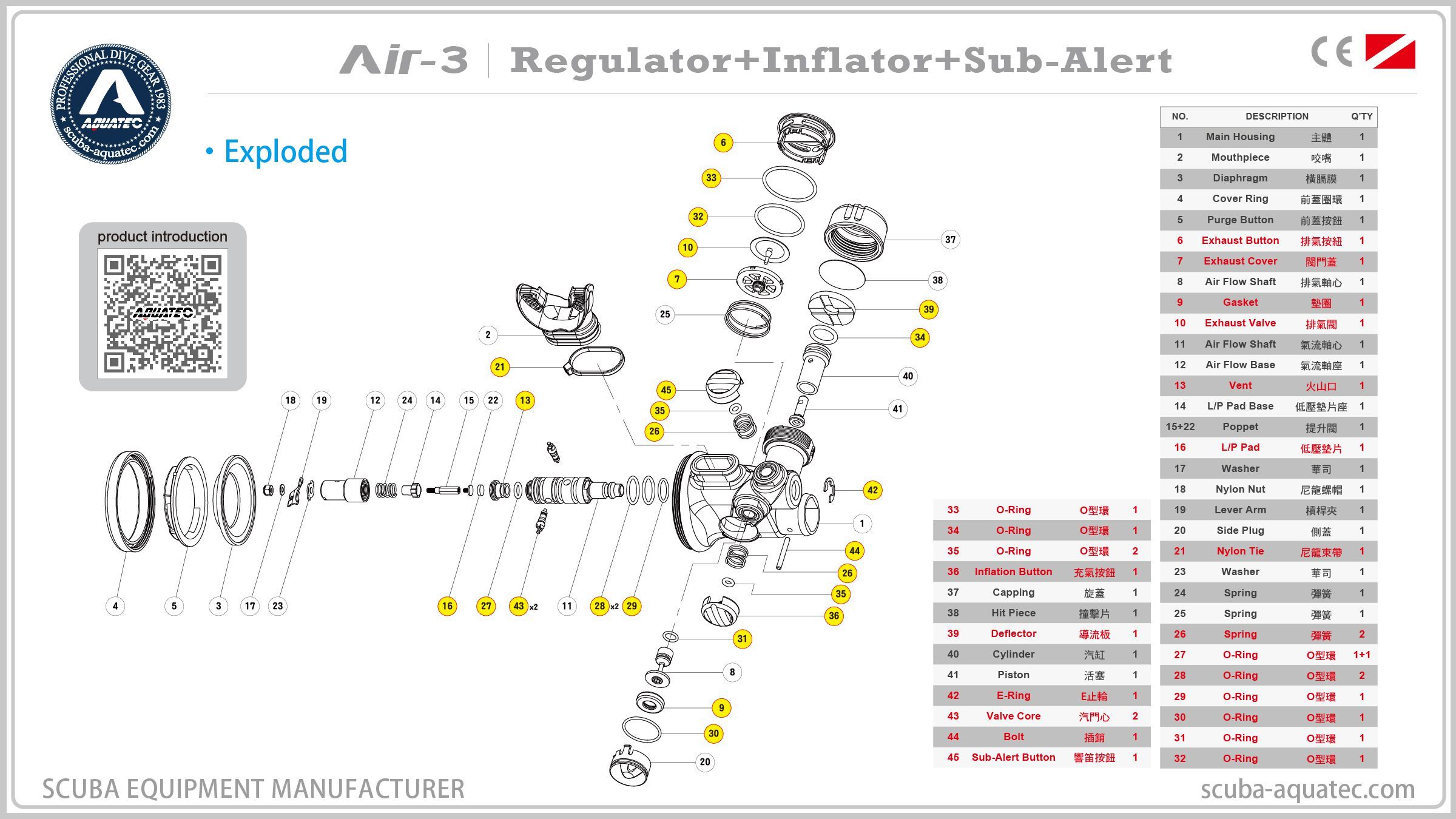 【Hướng dẫn thiết bị lặn Scuba-Aquatec】 AIR-3 | 360° | Bạch tuộc, Bơm hơi, Còi tín hiệu, Nhiều lặn hơn.